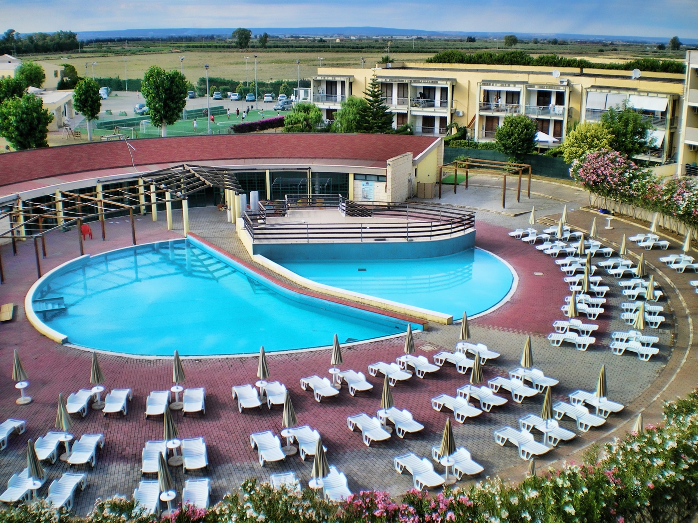 Inserita nel cuore del villaggio, la piscina si sviluppa in un’area accogliente e ben organizzata, con una forma circolare che la rende perfetta per momenti di relax e svago.